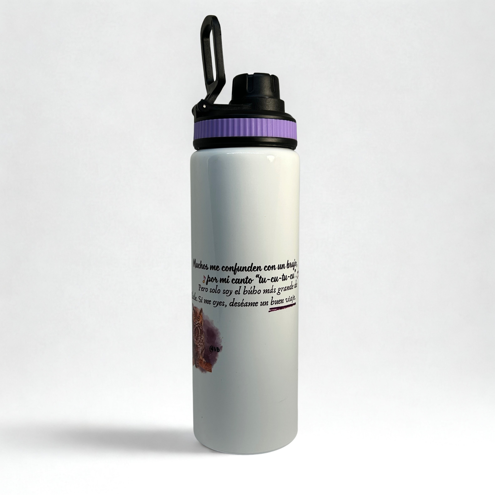 Hidrátate con propósito. Botella de aluminio de 800ml, liviana y durable. Reduce tu uso de plástico mientras llevas el arte de las aves chilenas contigo.